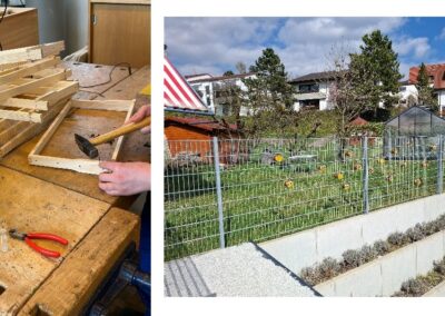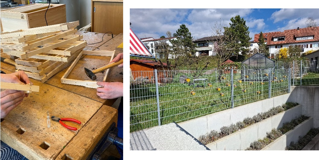 Im Winter haben wir Rähmchen für die Bienen hergerichet und kleine Wildbienenhotels gebastelt, die im Frühjahr aufgehängt wurden.