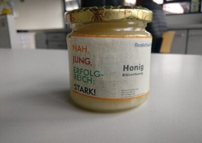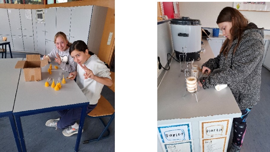 Im Bienenhaus sind zwei neue Völker eingezogen und haben sich gut entwickelt. Den Kindern wurde der Jahreslauf des Bienenkalenders vorgestellt und zusammen wurden Einbicke in die Bienenvölker vorgenommen. Im Laufe des Schuljahres wurden Honigkekse gebacken und Honig für die Schule abgefüllt, der am Weihnachtsmarkt verkauft wurde.